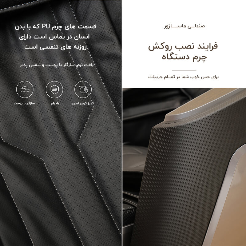 در این حالت بی‌وزنی، تنش‌های عضلانی عمیق از بین می‌روند. طراحی لوکس با چرم باکیفیت دوام بالایی ایجاد می‌کند. همچنین جلوه‌ای زیبا به فضای خانه‌تان می‌بخشد.